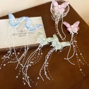 2pcs Cute Butterfly Hair Clips with Long Tassels