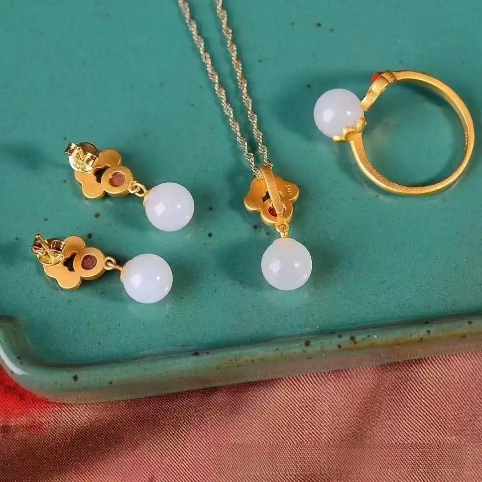 Auspicious Cloud Necklace Stud Earrings Ring Set