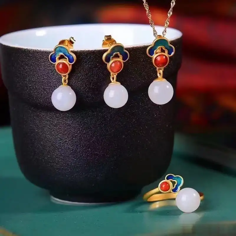 Home > Shop > Auspicious Cloud Necklace Stud Earrings Ring Set