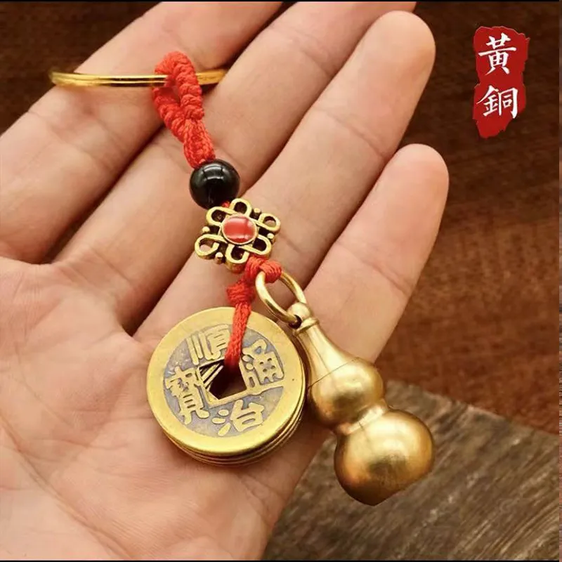 Brass Red Rope Copper Coin Chinese Zodiac Gourd Keychain