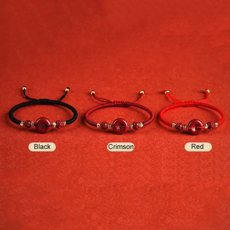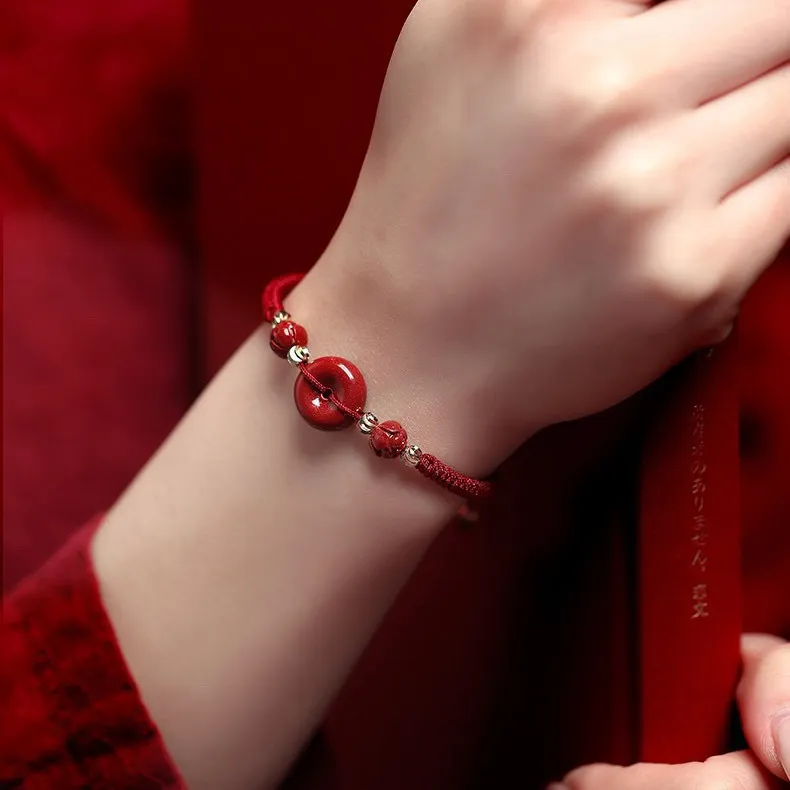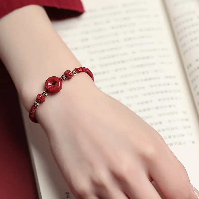 Cinnabar Ping An Buckle Woven Rope Adjustable Bracelet