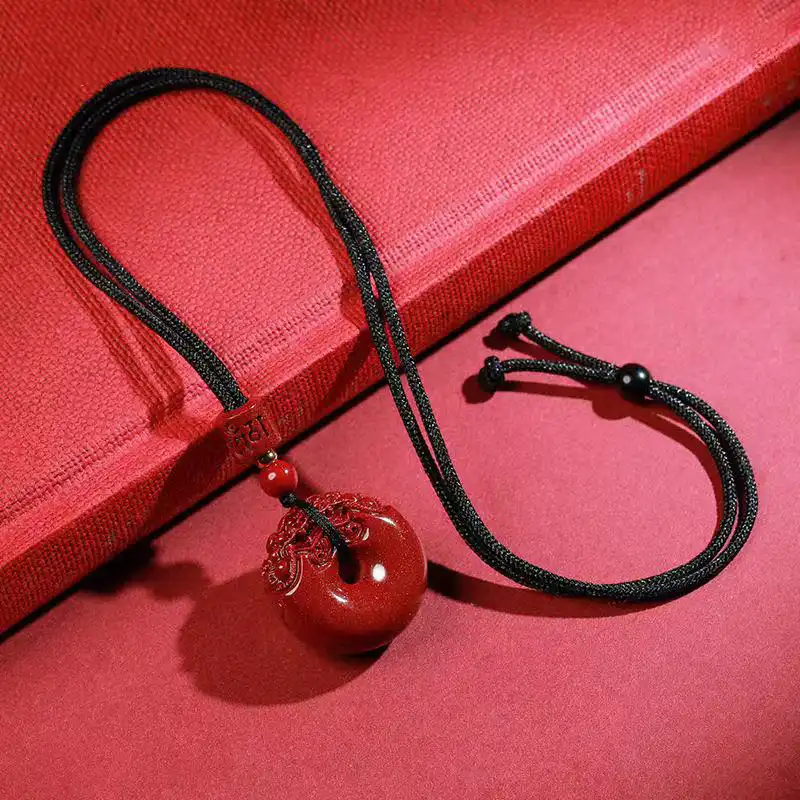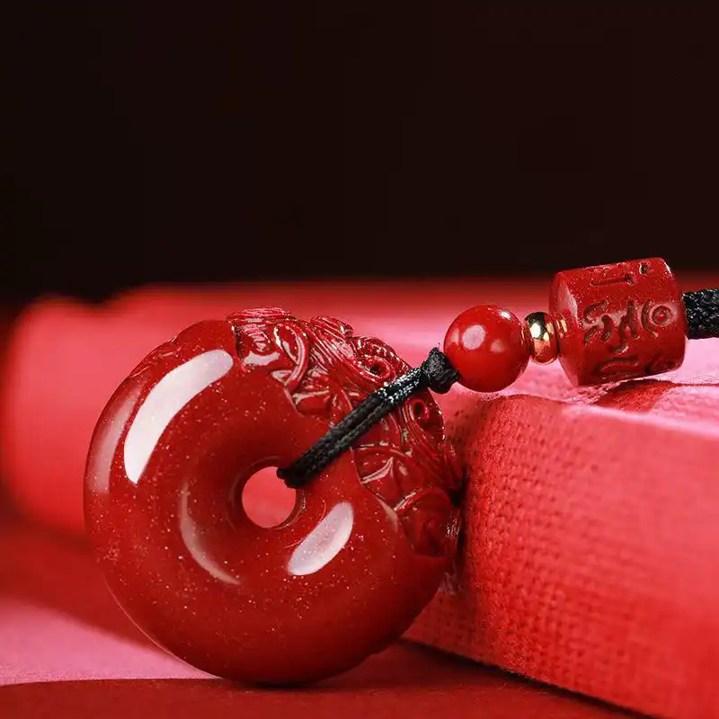 Cinnabar Pixiu Pingan Buckle Necklace