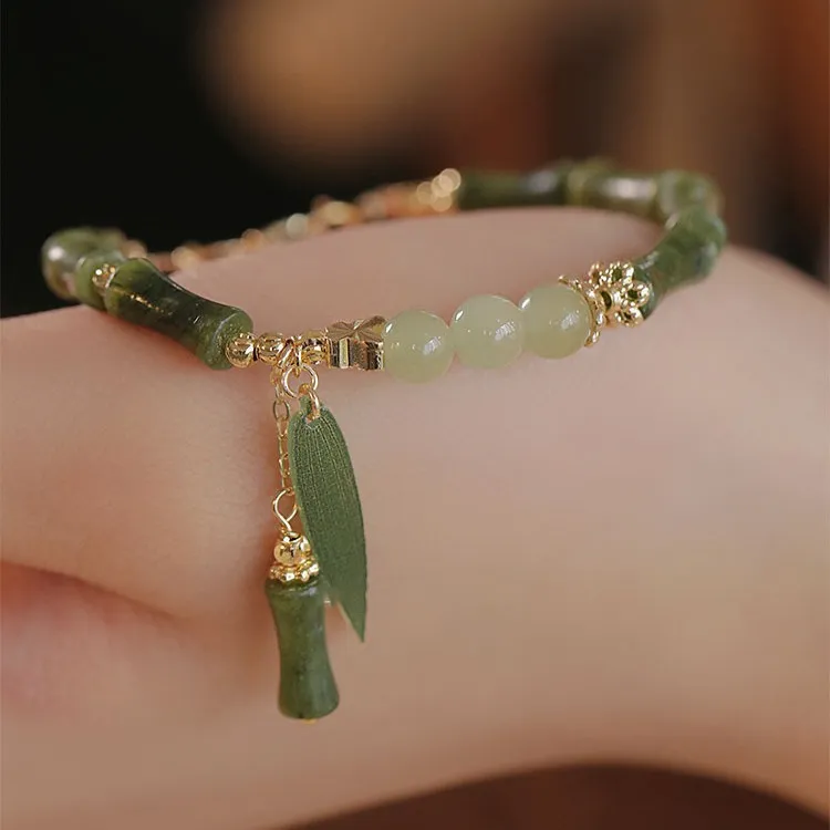 Home > Shop > Green Bamboo and Leaf Bracelet