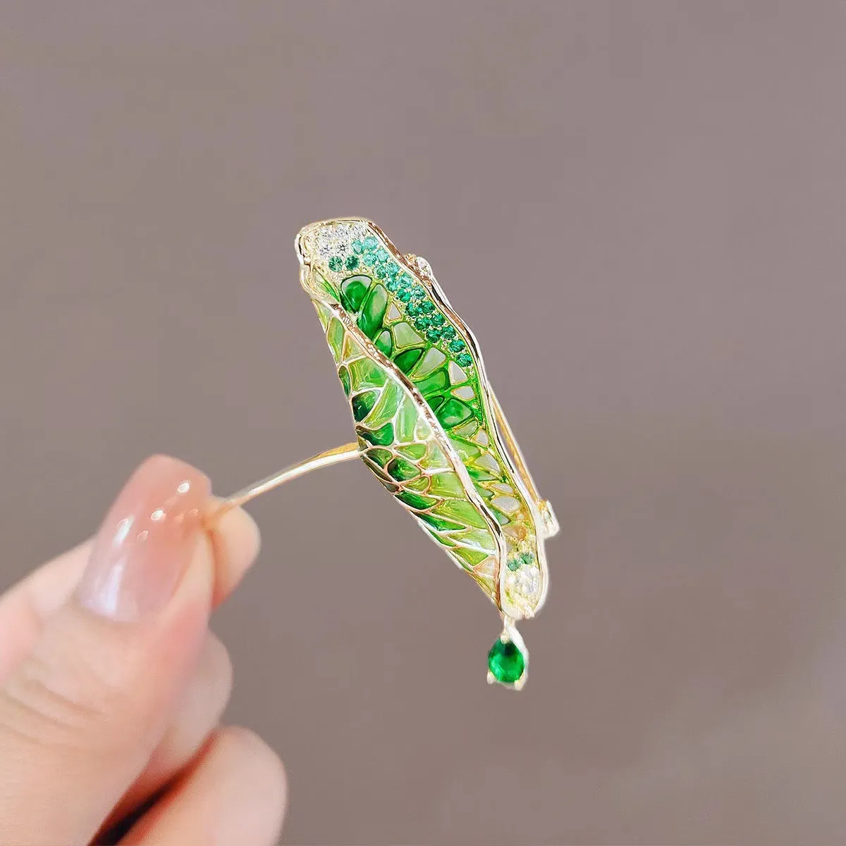 Home > Shop > Green Lotus Leaf Water Droplet Brooch