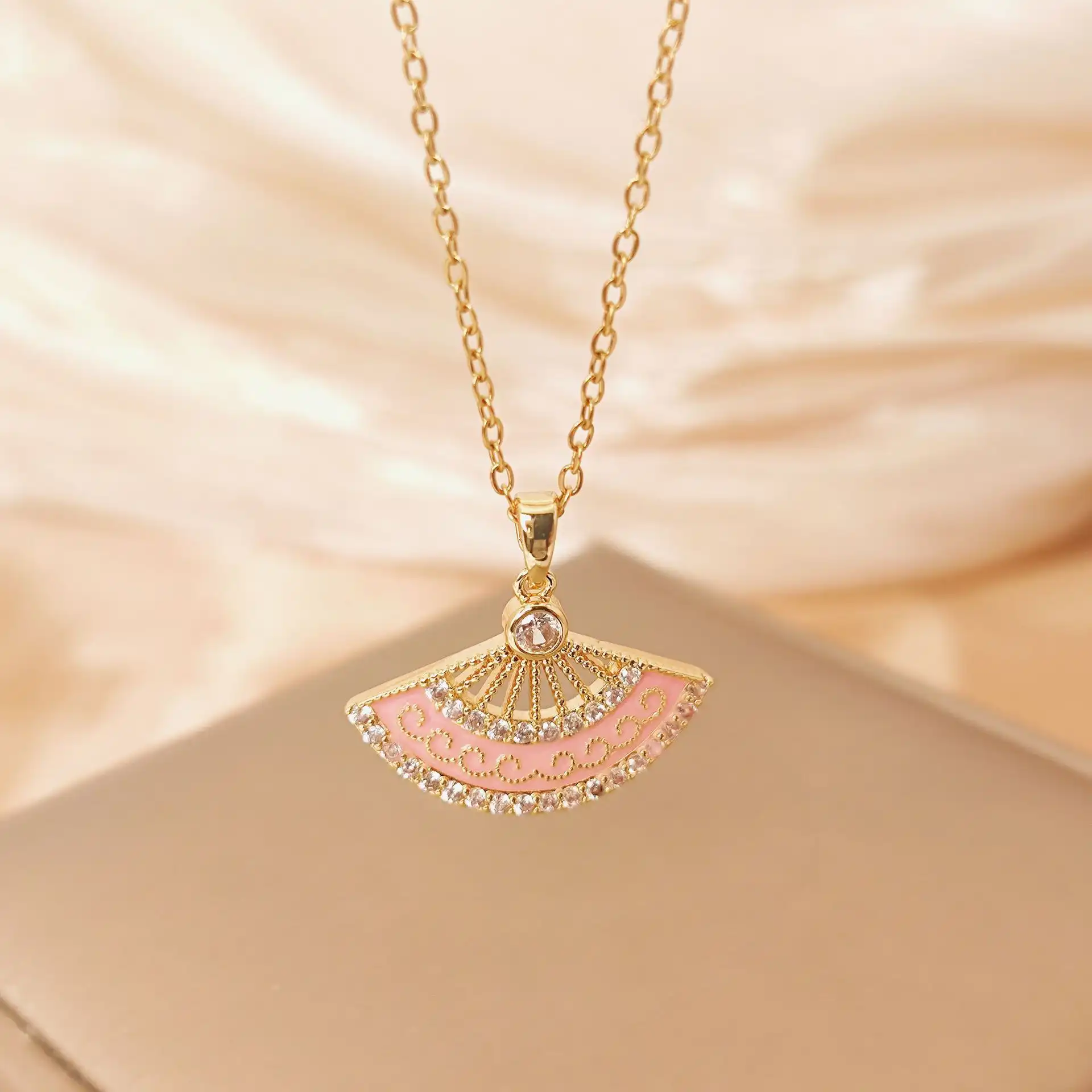 Home > Shop > Hollow-out Fan Necklace Inlaid with Synthetic Zircon