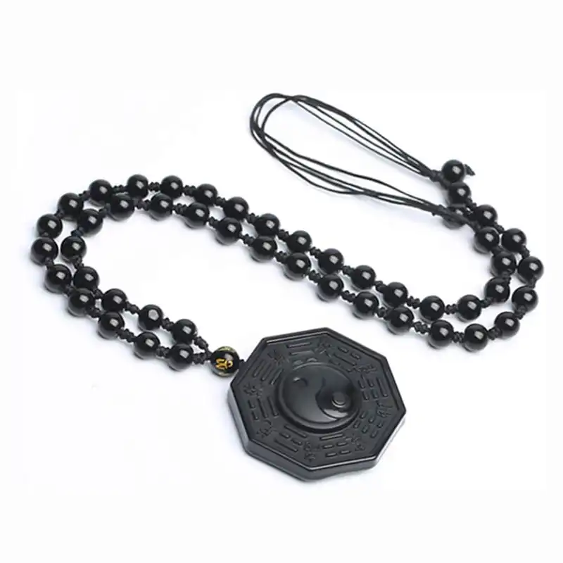 The yin-yang pendant is made of 100% natural obsidian.
