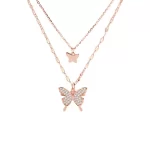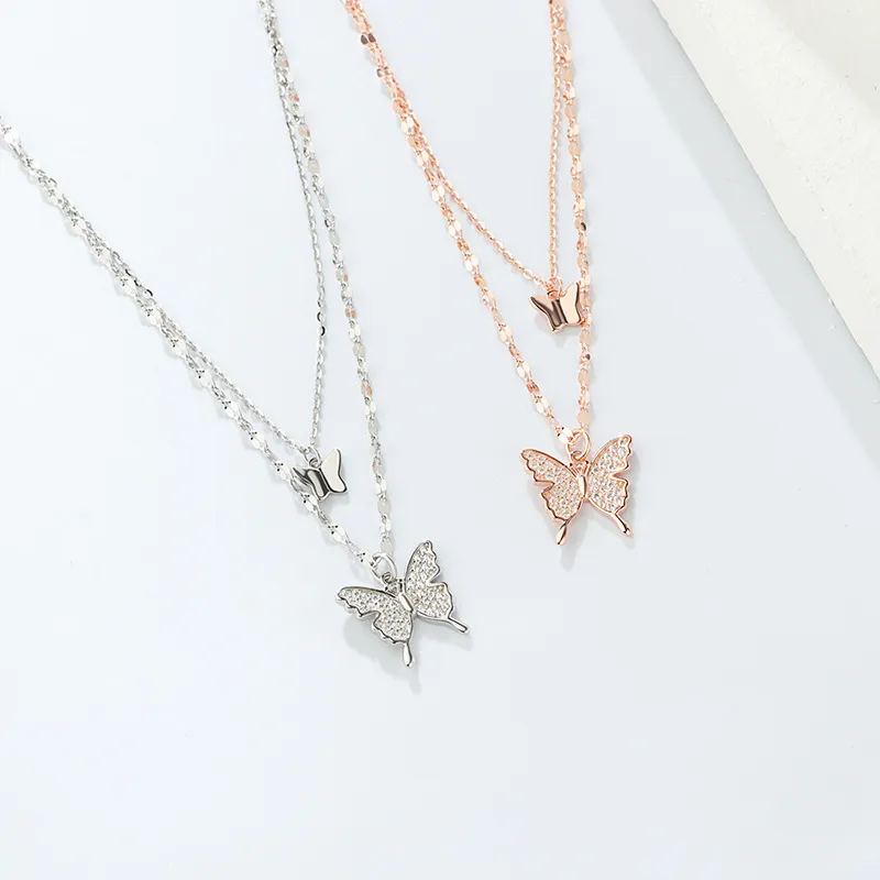 925 Pure Silver Double-layer Butterfly Chain Pendant Necklace