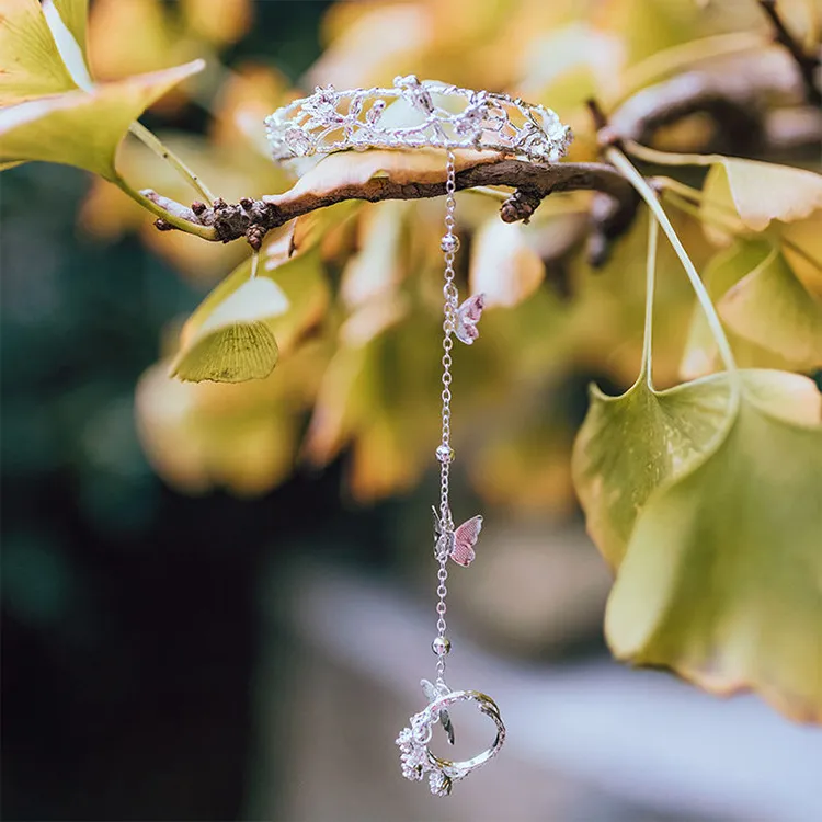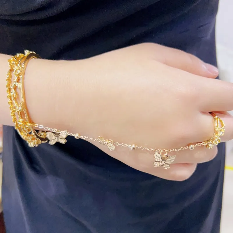 Rose Ring Butterfly Hand Chain Link with Open Hollow Bangle