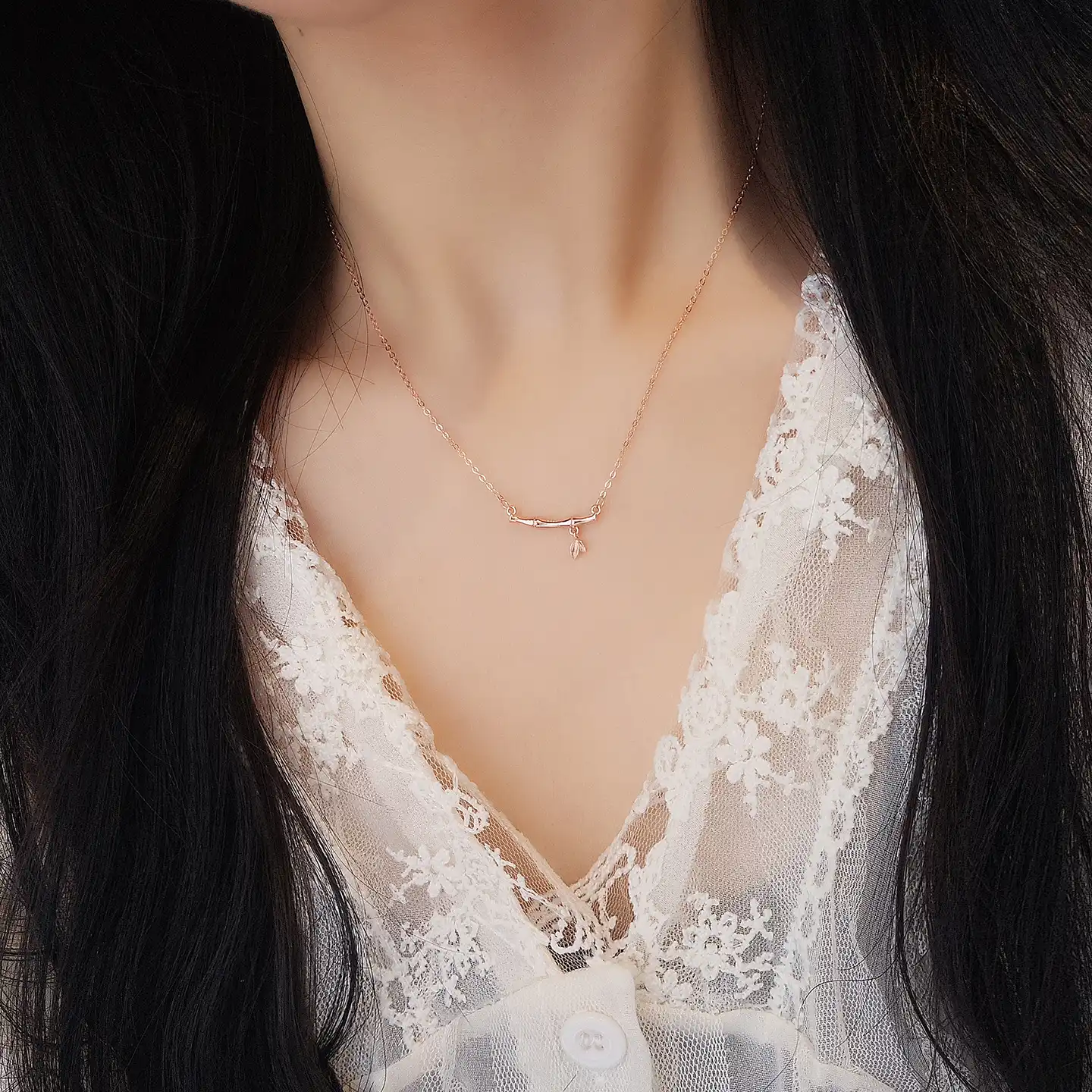 Home > Shop > S925 Silver Bamboo and Leaves Necklace