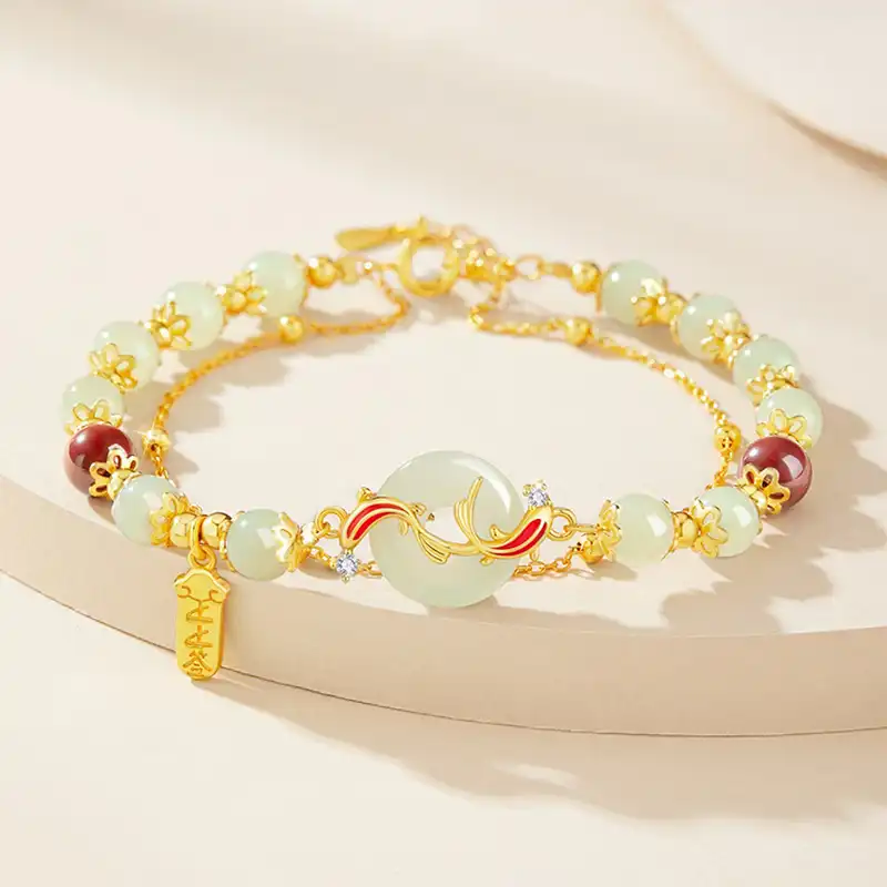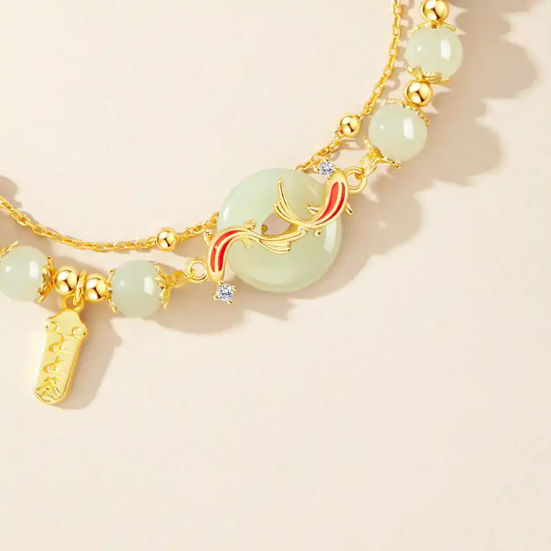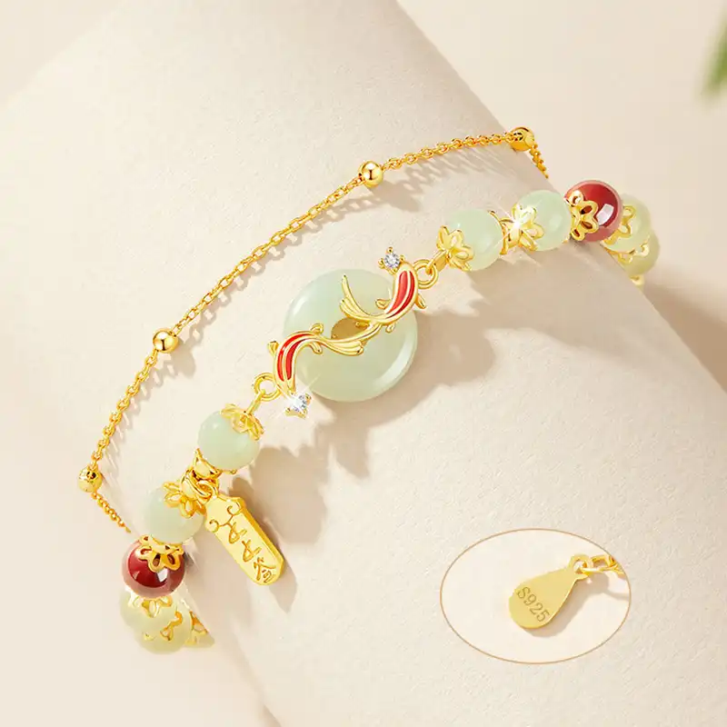 S925 Silver Hetian Jade Koi Pingan Buckle Bracelet
