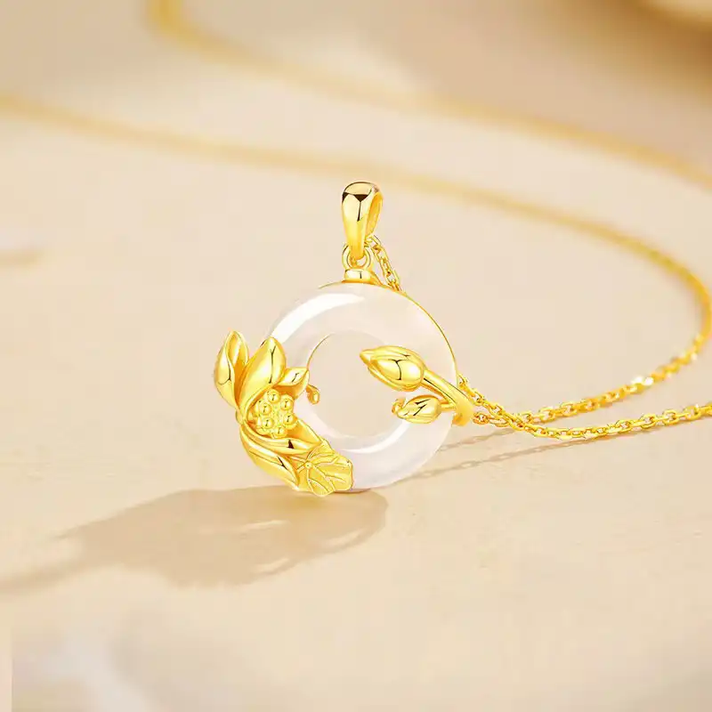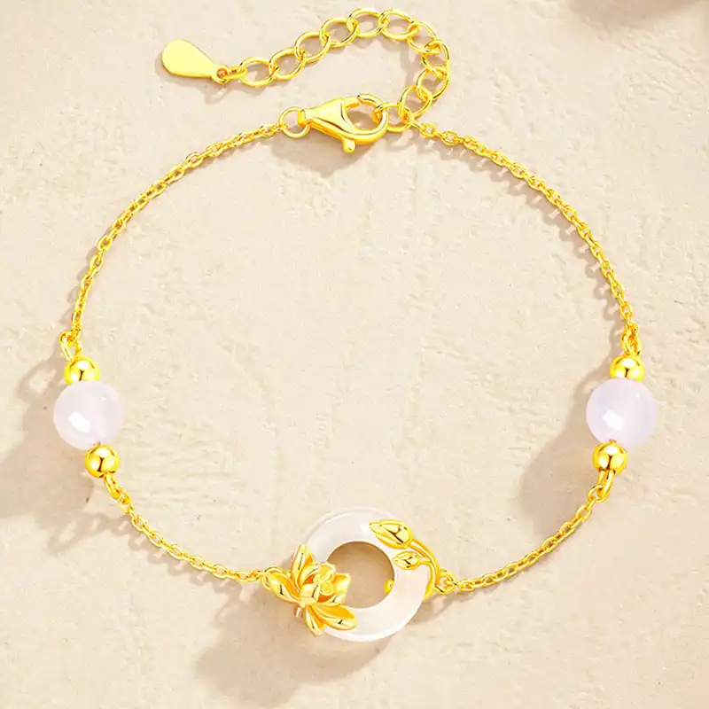 Home > Shop > S925 Silver Lotus Pingan Buckle Necklace Bracelet Set