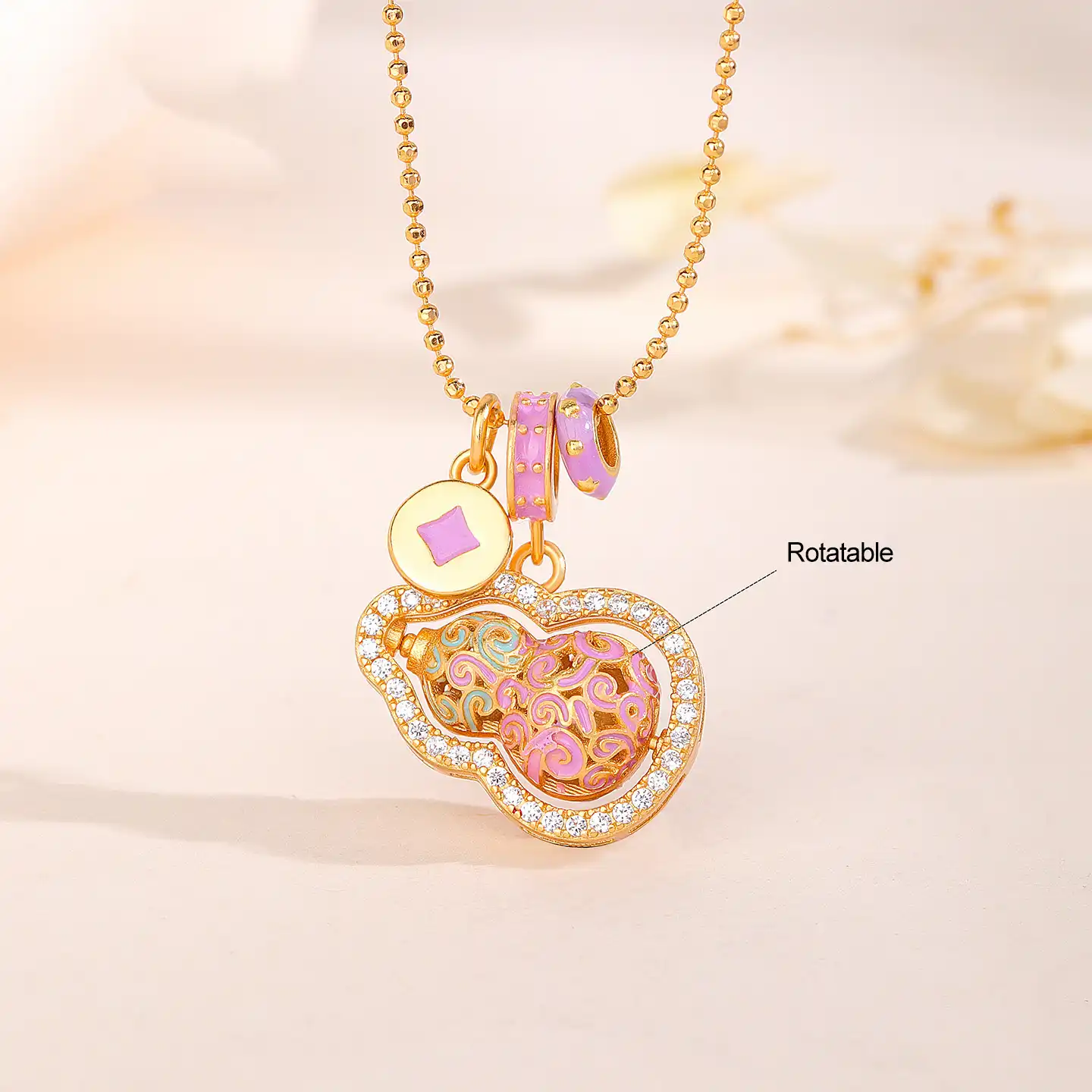 Home > Shop > S925 Silver Rotatable Colorful Gourd Inlaid Zircon Necklace