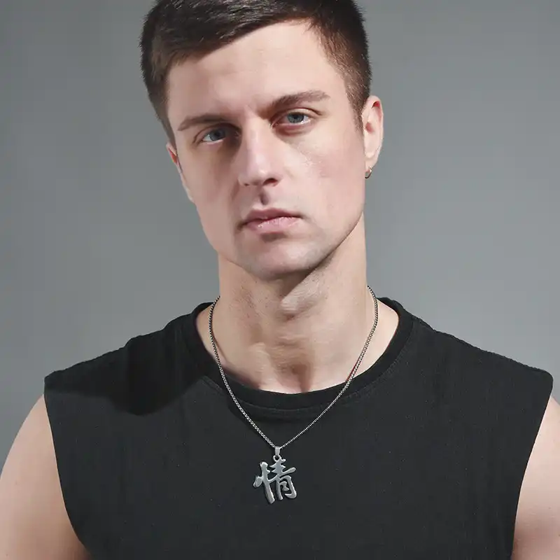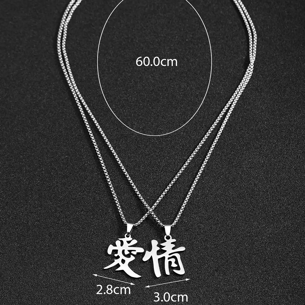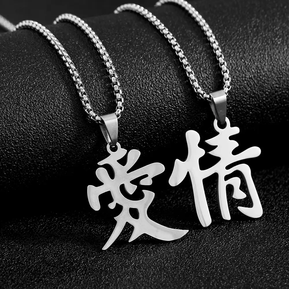 Stainless Steel Chinese Character “Aiqing” Love Pendant Necklace